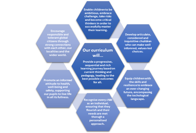 We seek for our pupils to develop a love of learning and curiosity for the wider world with an understanding of the impact they can have on others and the world beyond. We seek to help our pupils develop confidence, resilience and a capital of knowledge and skills that they can grow throughout their primary experience; preparing our pupils well for their next steps. Our curriculum seeks to broaden horizons, ignite passions, nurture talents and make connections in learning as well as positive human connections.